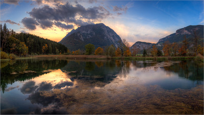 Herbstliche Spiegelung am Grimming in Trautenfels (Steiermark)