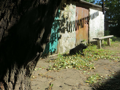 , мне здесь выражение лица дерева понравилось,)))) словно оно охраняет собаку, что охраняет носочки.)))
