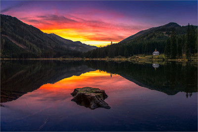 Abends nach Sonnenuntergang am Ingeringsee in der Gaal .Steiermark. Österreichfoto