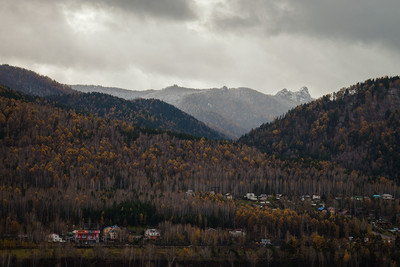 "Красивый берег" в Академгородке Красноярска, а на том берегу - заснеженные Столбы!