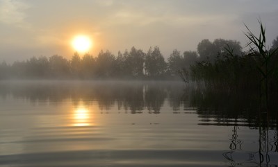 Мелкие гладкие волны в тумане и с отражение солнца, впечатлили!