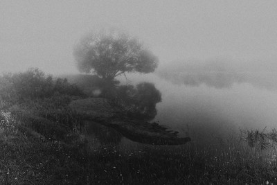 Дерево у Засеки на берегу Волчины утром