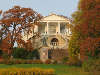 Лестница Камероновой галереи Галерея получила название по имени своего архитектора Чарльза Камерона. Расположена она на склоне холма, на границе регулярной и пейзажной частей Екатерининского парка в Царском селе. Идея строительсва камероновой галереи принадлежит Екатерине II. Строительство галереи началось в 1784 году и закончилось в марте 1787 года |
