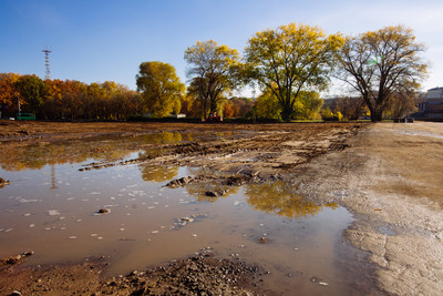 Здесь был выставочный центр НВЦБелэкспо, а сейчас — большая лужа.