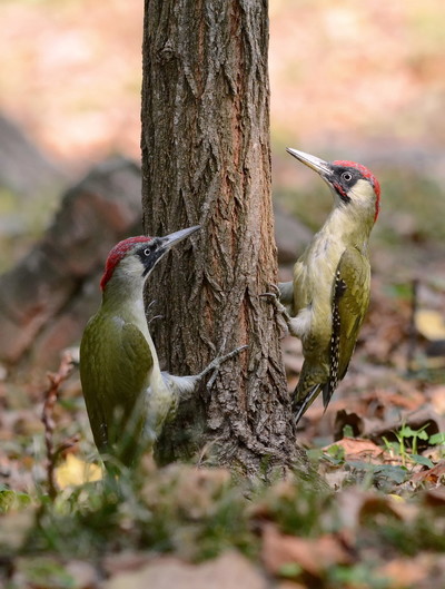 Самец и самка зелёного дятла.