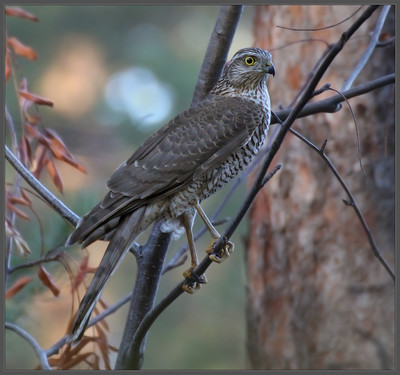 Ястреб-перепелятник. Отдыхает после неудачного нападения на кедровку