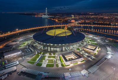 Объезжая по ЗСД, постоянно видишь меняющуюся в цвете тарелку (летающую) на ножках. С высоты полёта дрона, действительно тарелка, только гораздо больше! Красиво! Здорово!