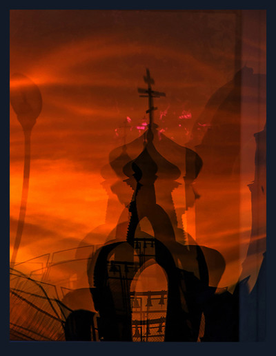 Евгений Буянов, Точно, Евгений! Это был стеклопакет, снятый с улицы при затемнённом помещении. Следы рамы в качестве подсказки видны справа. А храм на заднем плане, подсвечен закатным контровым светом. |