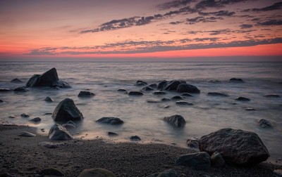 Закат на Балтийском море возле мыса Таран в Калининградской области.