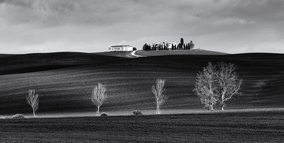 Несколько деревьев в поле у Пьенцы весной