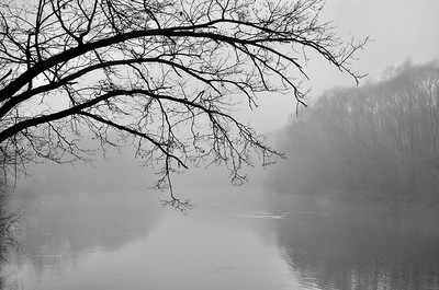 Десна у городского пляжа осенью и в тумане...