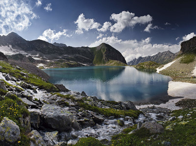 Фото замечательное, фотограф мегаумница, что добрал(ась)ся до этого озера. Слово Домбай в описании работы лишнее.