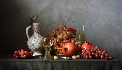 Классический натюрморт с фруктами и вином