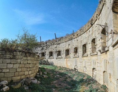 КРЕПОСТЬ «КЕРЧЬ» (ФОРТ ТОТЛЕБЕН). Редюит прикрытого пути. Крепость «Керчь» (форт Тотлебен) это наимощнейшее на то время бастионное сооружение на территории Восточного Крыма. Занимает крепость огромную площадь в 400 га. Сохранность крепости фактически в идеальна. Крепость включает в себя свыше 300 построек: казармы, пороховые погреба, подземные коммуникации, хозяйственные постройки, а общая протяжность оборонных рубежей составляет около 7 км. Вместе с тем, крепость можно назвать «невидимкой». Даже находясь всего в нескольких десятках метров от нее, взору открывается лишь холмистая местность, что было главным замыслом гениального инженера Эдуарда Ивановича Тотлебена. Сентябрь 2017 год. Керчь, Республика Крым, Россия. |