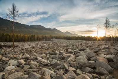 Рассвет на каменной речке. Поселок Аршан, сентябрь 2017 года.