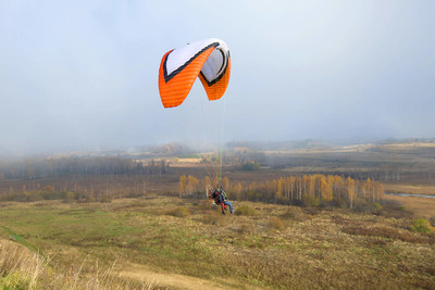 Параплан летит над Изборско-Мальской долиной в окрсестностях изборска