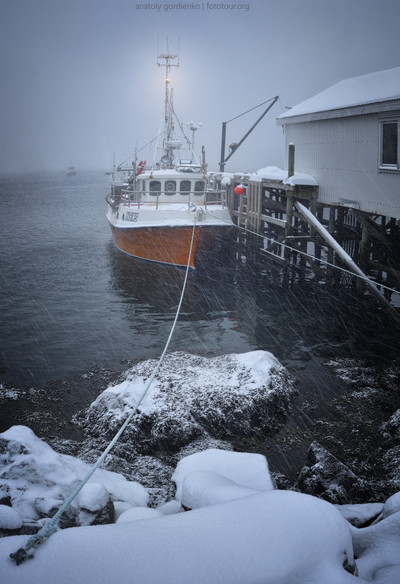 На рейде Корабли постоят и ложатся на курс, Но они возвращаются сквозь непогоды... Этот ненастный сюжет в Рейне мы сняли во время переезда между точками съемок. Это еще раз подтверждает, что на Лофотенах можно снимать в любую погоду |