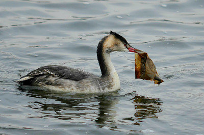 Чомга не улетела, повидимому имеет повреждение, но удачно охотится на рыбу и даже собралась строить гнездо.