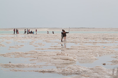 Селфи на соляных узорах мёртвого моря