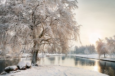 Зимняя заснежаная ива у реки. Минск, Серебрянка