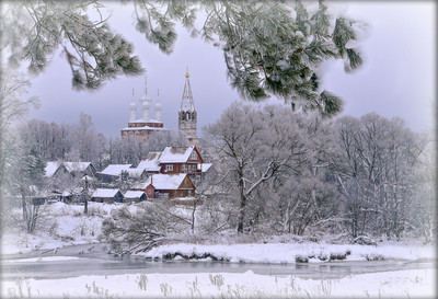 Зима в Дунилово . Церковь Покрова Пресвятой Богородицы - это главный храм Успенского монастыря в селе Дунилово. Она расположена в южной части монастырского комплекса и относится к типу, так называемых, бесстолпных пятиглавых храмов с трапезной и колокольней, продолжающих архитектурные традиции XVII столетия. рам исключительно нарядный и выразительный по композиции, выстроен в стиле нарышкинского барокко и впоследствии послужил примером для целого ряда культовых сооружений бывшего Шуйского уезда. Церковь изящна, в ее декоративном убранстве использовано множество элементов. В 1812 году для колокольни Покровской церкви был отлит колокол в 600 пудов, который создавался как символ победы русских над французами. В наши дни храм находится на реставрации. |