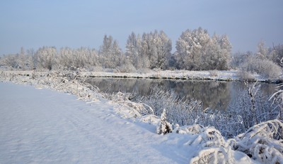 , Да, посчастливилось оказаться в этом месте первым! Ночной снегопад так напугал животный мир, что даже и их следов поблизости не было видно. Только птицы порхали среди заснеженных веток со спелыми ягодами облепихи.