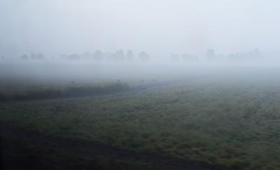 На рассвете 4 косули забрели на фермерские поля ...( из окна поезда)