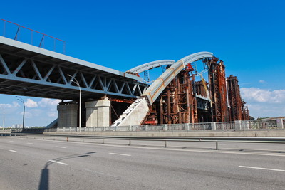 Киев. На сегодняшний день мост по большей части достроен.