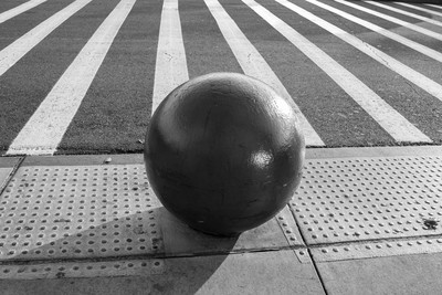 Михаил 57 Мир, Ant 4ert, Alexandr Popov, Олег Каледин, Уважаемые знатоки! Большое спасибо за столь подробные комментарии! Хочу вам сказать, что я тщательно выбирала точку съёмки. Мне хотелось как можно точнее показать сходящиеся линии за шаром. А это можно было сделать только поместив шар посередине. Любая другая точка всё сбивала. Кроме того, линия плит примыкала к полоскам не перпендикулярно, а под небольшим углом. Поэтому показать их горизонтальными не представлялось возможным. Сегодня специально сбегала и сняла всё это дело сбоку. Выкладываю специально для вас. (разумеется без обработки).