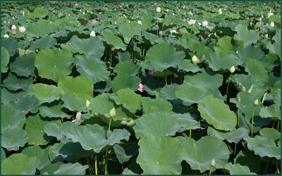 Море лотосов Китай, провинция Сычуань. На лотосовой ферме вблизи Чэнду. Плантации лотосов в период цветения становятся местом созерцания. Цветы продают на срезку, но главный доход фермеров от продажи клубней лотосов, из которых готовят множество очень вкусных блюд. |