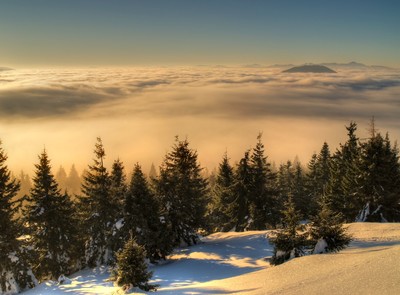 Утренний вид в юго-западном направлении при подъеме на г. Петрос со стороны полонины Головческа. Январь 2017 г.
