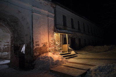 Рождество в восстанавливающемся монастыре Александро-Ошевенский монастырь находится в 50 км от Каргополя. Преподобный Александр Ошевенский - самый почитаемый святой Каргопольского края. Сейчас монастырь восстанавливается. Фото сделано Рождественской ночью. На снимке надвратный храм Свт. Николая. |