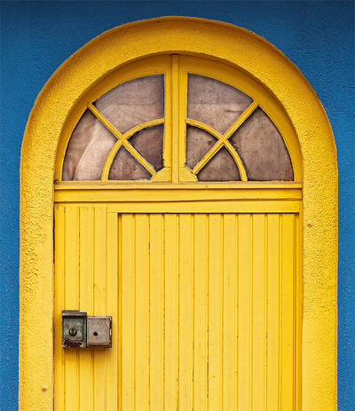 Tür eines alten Bahnhofs in Frankfurt/Main.