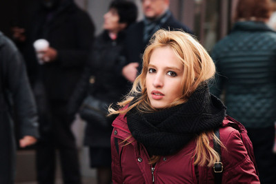 Просто красивая девушка в толпе на Таймс Сквер в Нью-Йорке