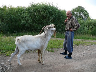 Кадр решает все козёл не хотел идти домой... даже на верёвке, упирался .....он любил сначала понюхать и пожевать дымящую сигарету и только после этого шёл какое-то время, козёл сам решал идти ему или нет. |