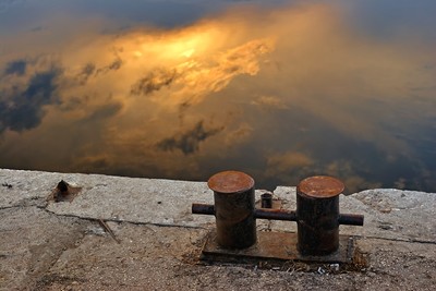, неподвижная вода как зеркало. Небо правда слегка выпало из резкости.