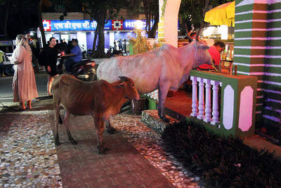 Илона Кириокатис, Коровам в Индии, несмотря на их священный статус, трудно живется. На севере Индии в Гималаях наблюдала, как совсем оголодавшие к февралю коровы жевали на помойке картонные коробки. |