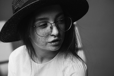 Фотостудия, модель, образ... А в глазах у модели света нет, потому как она от света отвернулась; фотограф не подождал, пока модель договорит что-то важное невидимому собеседнику.