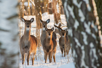 Пятнистые олени на подкормочных площадках, близ Лосиной биостанции.