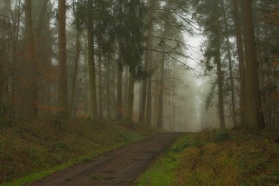 Лесной пейзаж . Туманный.