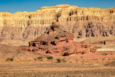 Скала:"Винтовой холм"... «Винтовой» холм получил своё название благодаря спиральной лестнице, опоясывающей его по диагонали и придающей ему форму винта. Он являет собой яркий пример великого разнообразия неповторимых форм и очертаний, образованных в результате эрозии, действующей по-разному на различные слои одной и той же скалы. Поэтому зачастую эти слои находятся под разными углами друг к другу. Парк Тимна. Эйлат, Израиль. |
