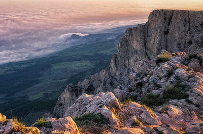 Розовый закат снят с высоты горы Ай-Петри, Крым.