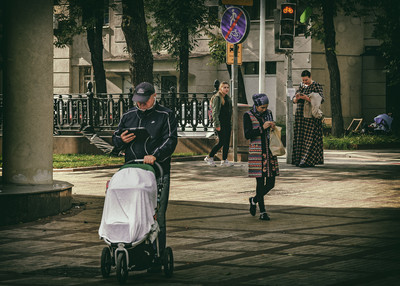 Бедная девушка в зелёной куртке! Видимо она потеряла свой гаджет