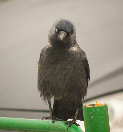 галка сидящая на заборе возле которого торчат бычки..такой взгляд у галки как будто это она все перекурила