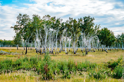 Russian nature as seen from the road in Bagan district, Novosibirsk region, Russia.