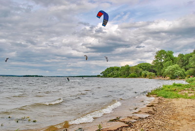 Заславское водохранилище. Кайтсерфинг – это когда воздушный змей с невероятной мощью ветра буксирует Вас за собой.