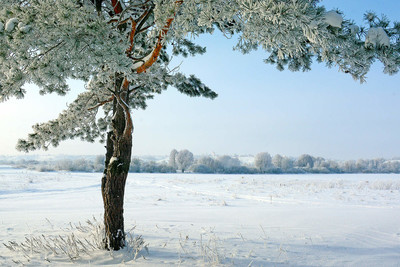 Ночной мороз украсил хвою инеем и зимний пейзаж стал еще краше.