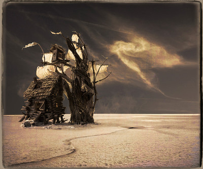 Vixtur, В этом сюжете (в основном, не в моём) отдаёт не драмой, а безумием Робинзона.. Паруса на дереве- как символ желаний, не имеющих возможности к реализации, либо как говорилось в старосм советском анекдоте- "качайте вагоны, будем делать вид что едем". За кадром осталось, из чего таки в пустыне удалось собрать хижину и почему все жильцы еще не сдохли от бескормицы Видимо как с островом Пасхи приключилось- использовали все деревья на установку идолов и убили остров и себя..