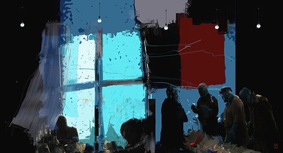 Настроение распродажи на 100%. Все работает на это ощущение - фигуры покупвтелей и продавца, цветовая гамма и даже лампочки. Очень классно!