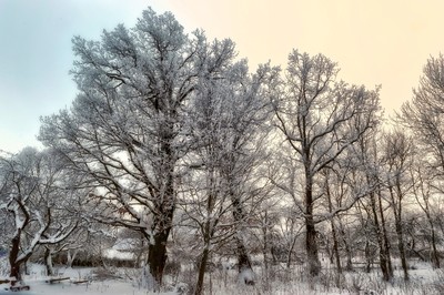 Яблони в снегу.